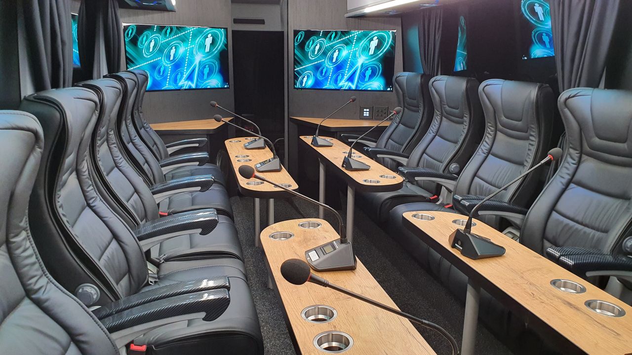 De meeste vergaderbussen beschikken over faciliteiten zoals: